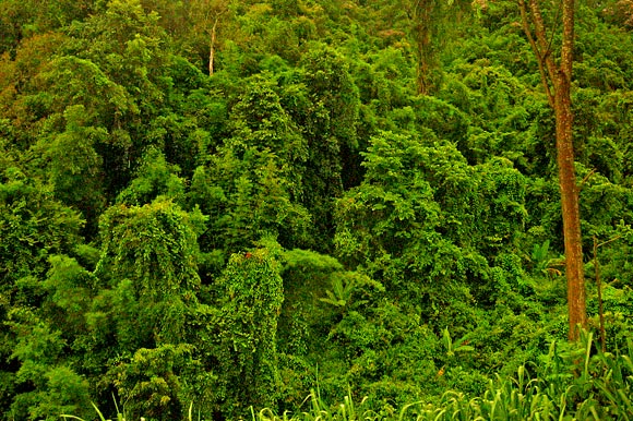 A view of the jungle out the window. It is hard to get any sense of scale.