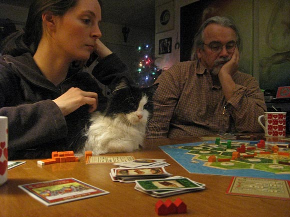 J. and D. waiting to for their turn in Settler’s of Catan.