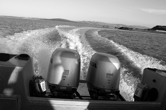 The Honda nuts thrust us violently through the water.