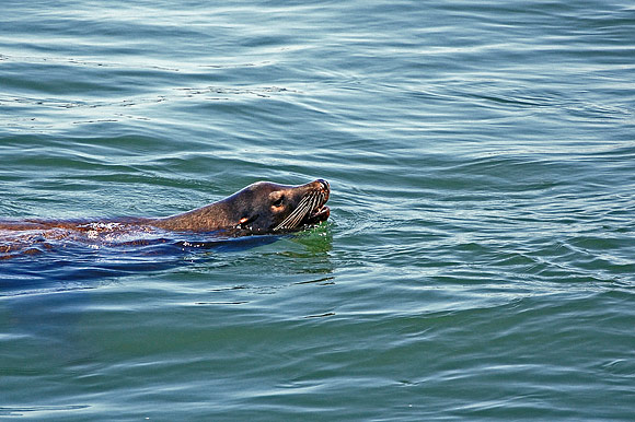 Three seals were prowling beneath the pier, possibly stealing bait from the fishing lines.