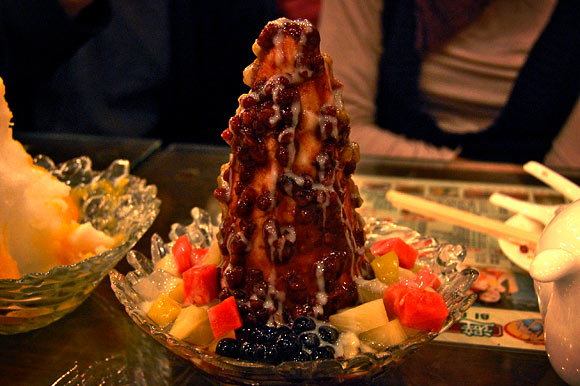 Bean ice tower with fruits and tapioca balls. Gross looking, but good tasting.