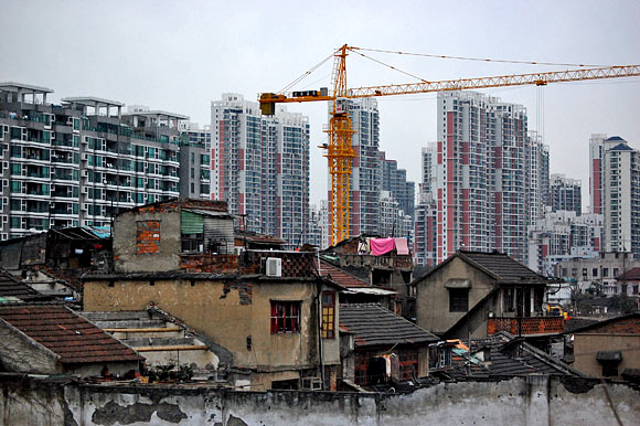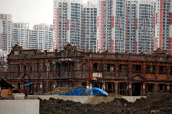 This weekend was a dry one, you see. Lady and I decided to spend most our time outside, so we took subway line 4 to Zhongshan Park on the northwest side of town. Saturday was still a little chilly and overcast. I had to work in the early afternoon, so we only had time to explore the neighborhood and wander through the park and down towards my office. A block of old homes near Wusong Creek was getting demolished to make way for new high-rises. A flood wall was getting put in as well. Amongst the rubble, a few buildings were still standing. Residents carried on, walking down crumbling lanes and through debris, the fate of their homes evident all around. Near the river was a long, smelly building that seemed like a lounge/sewage dump for the crew of the blue barges parked alongside.