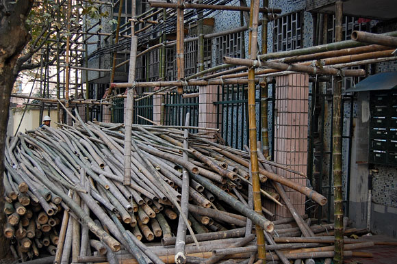 More bamboo scaffolding and walkways. This time on a high-rise scale.