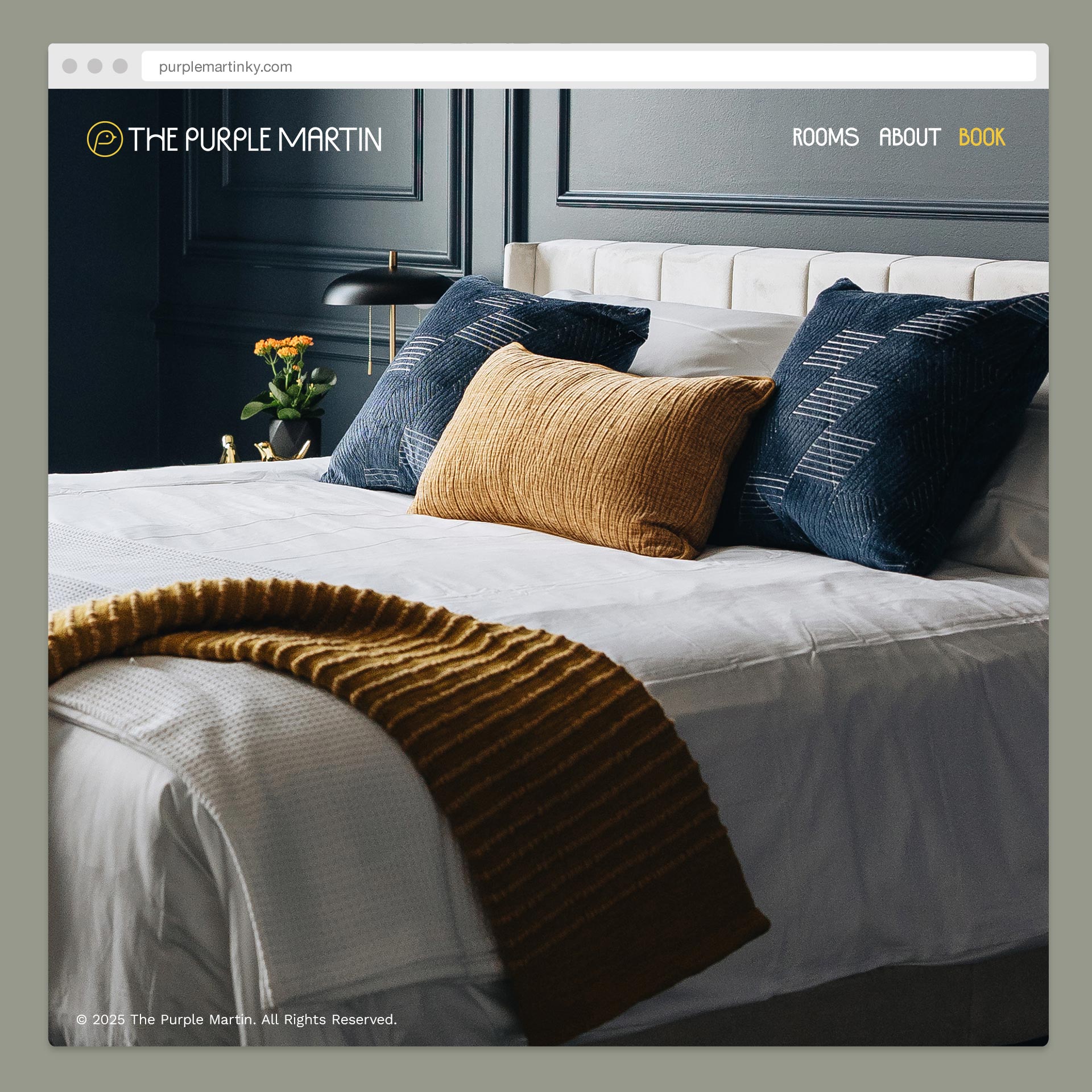 Taking its namesake bird as inspiration, the identity of The Purple Martin features a stylized bird head P for the symbol, paired with a playful and irregular modern deco logotype. The color palette and eclectic mood translated to the interior design of the 8 unique rooms, as well as way-finding and outdoor signage. This boutique hotel is proud to build its nest in a new community near Louisville, Kentucky.